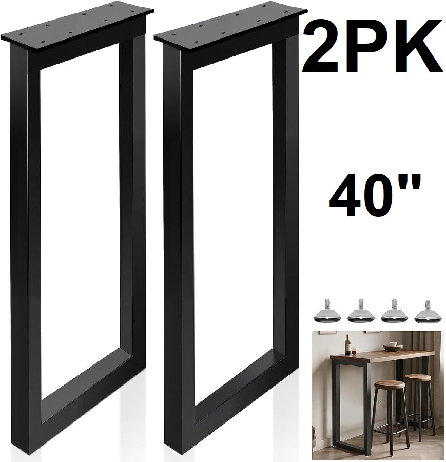 2PK METAL BAR TABLE LEGS - HEAVY DUTY DESK - DINING TABLE LEGS WITH ADJUSTMENT FEET PADS - DIY IRON FURNITURE FEET SET - 40" TALL - BLACK