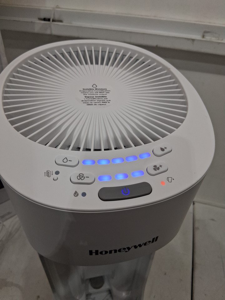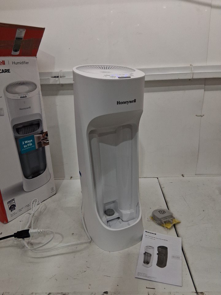 Honeywell Top-Fill Cool Moisture Tower Humidifier with Slim Design, Variable Output Control, Auto Shut-off - White (Model: HEV615WCv1)