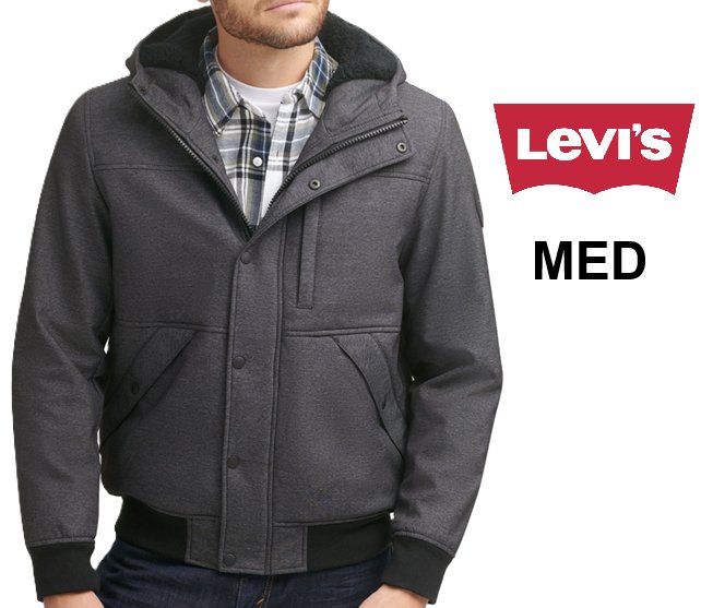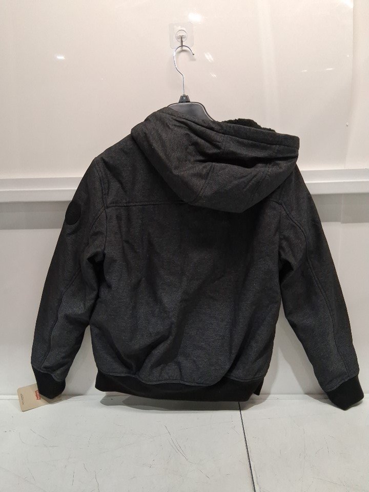 Men's LEVIS Soft Shell Sherpa Lined Hooded Jacket - MEDIUM - GREY/BLACK