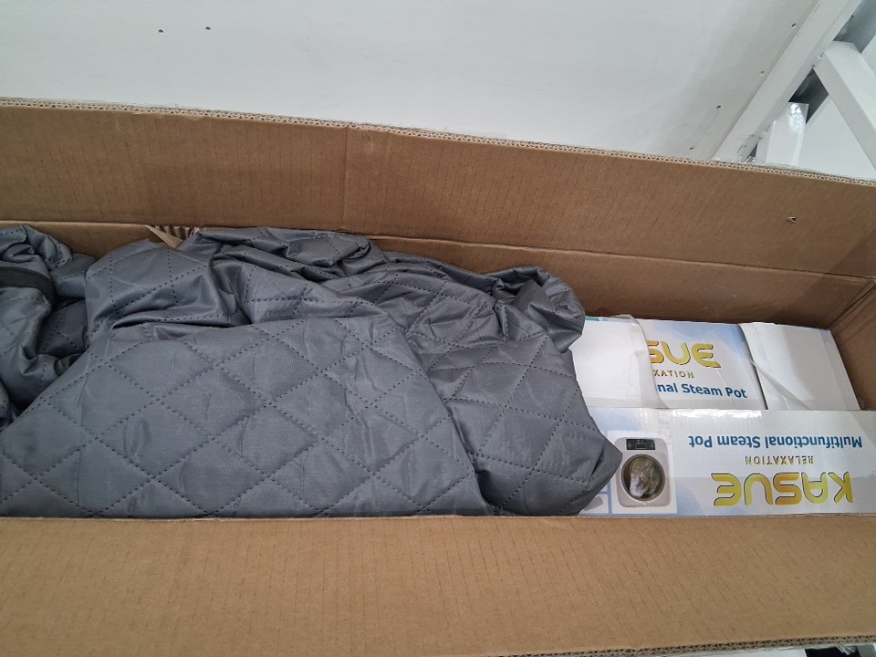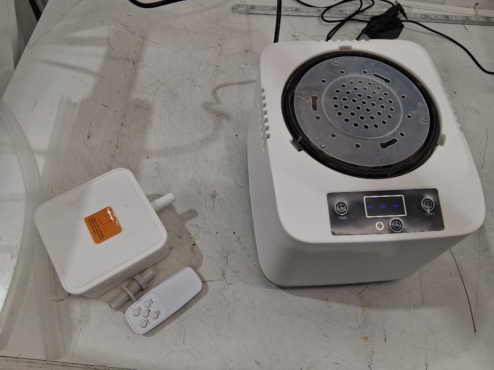 There are some water stains on the inside of the steamer, and some marks on the tarp indicating some prior use - see photos. Outside of being used, all parts appear present and in good working condition. Tested for basic power.