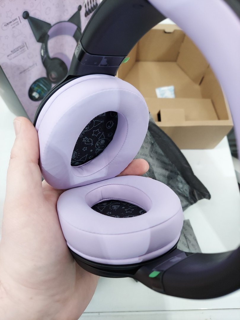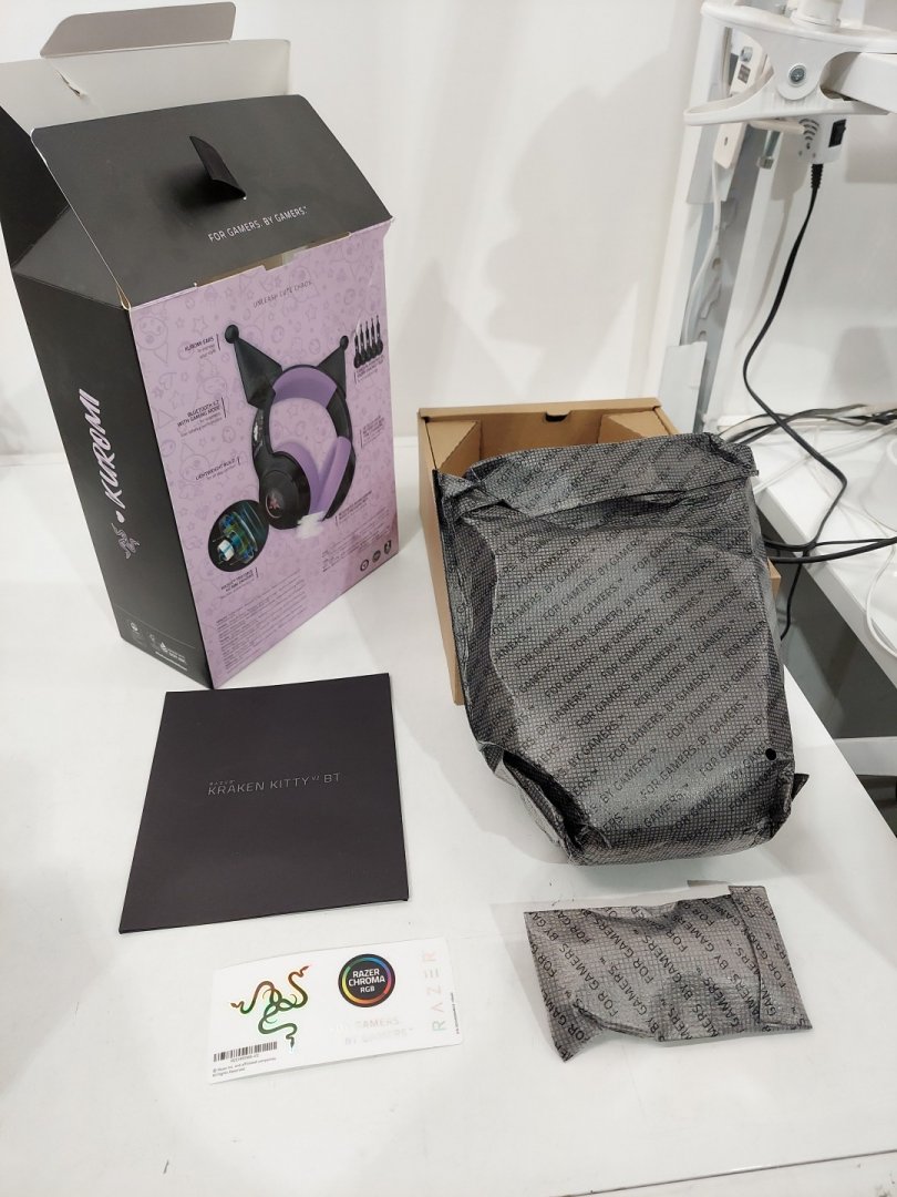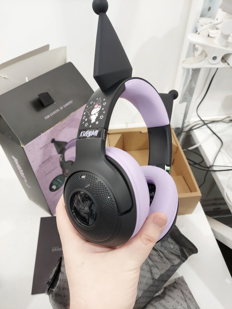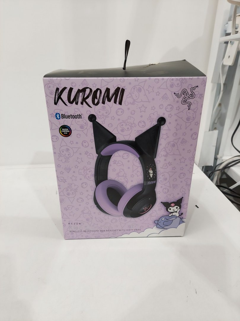 Razer Kraken Kitty V2 BT Kuromi Edition Bluetooth Wireless Headset with Built-in Noise Cancelling Microphones, and Chroma RGB - Black/Purple (Model: RZ04-04860300-R3M1)