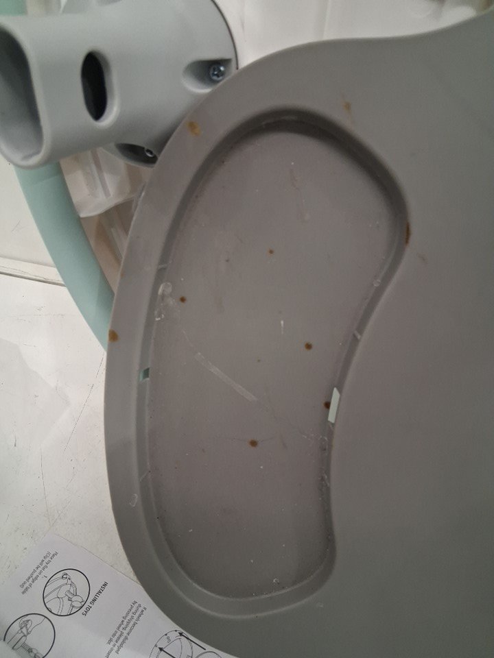 product was tested for power There is some light staining on the side snack tray area