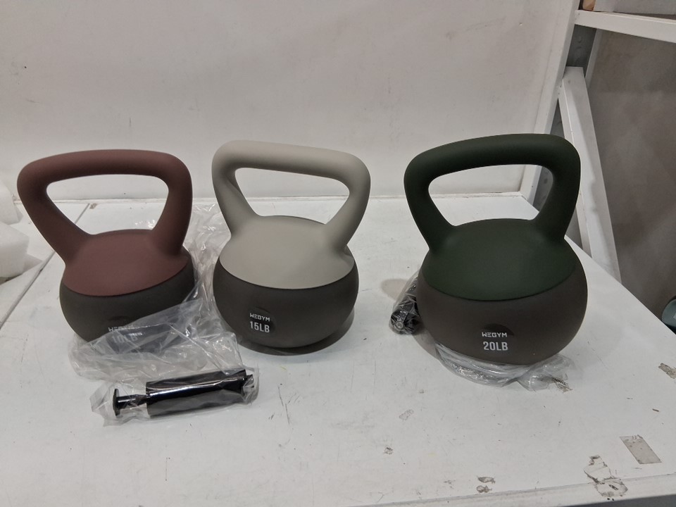 3pc WeGym Soft Kettlebells with Cushioned Impact-Resistant Base - 10LB 15LB 20LB - Maroon,grey,green (model: ‎KB101520BL-Mix)