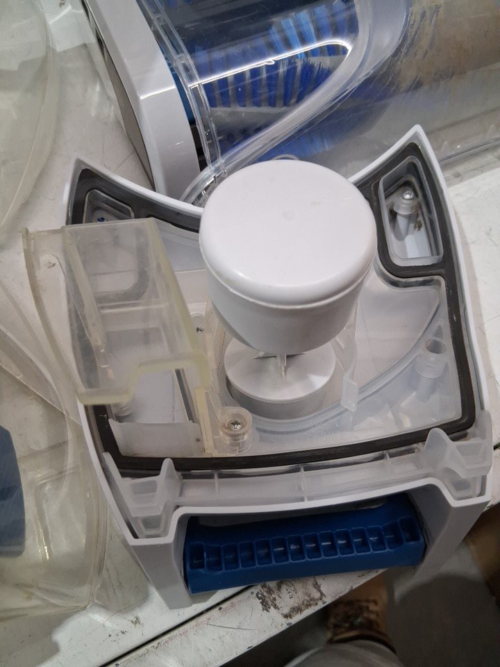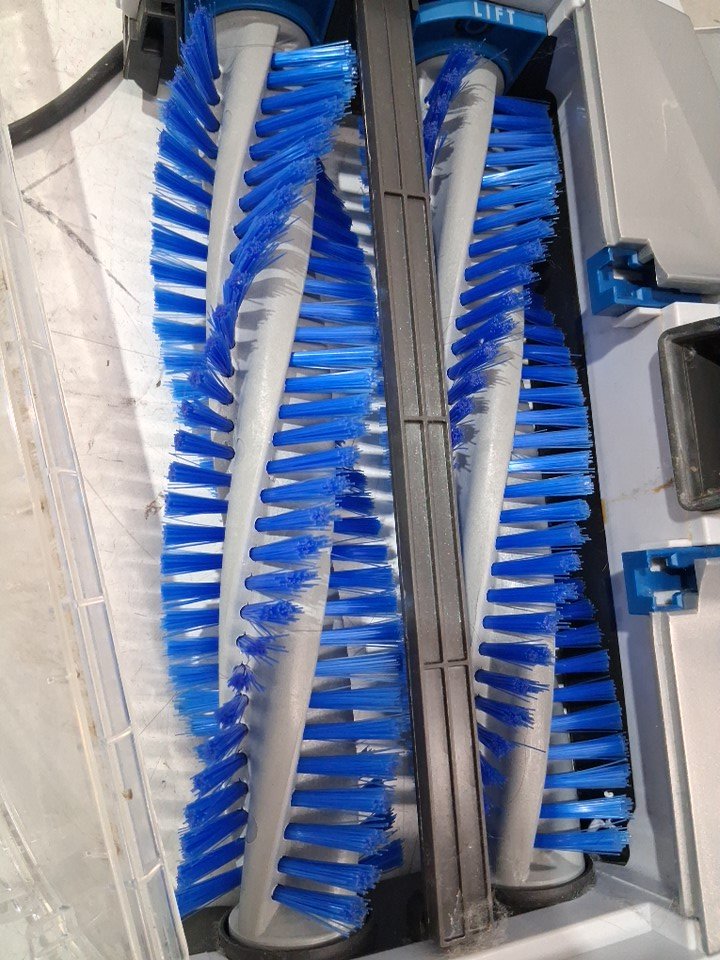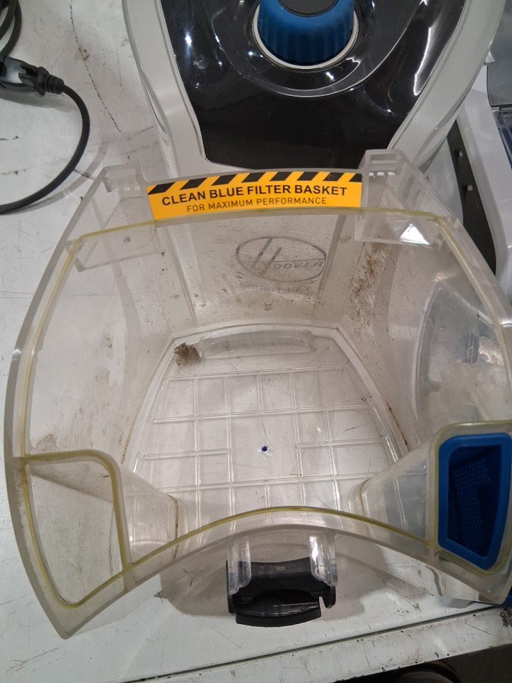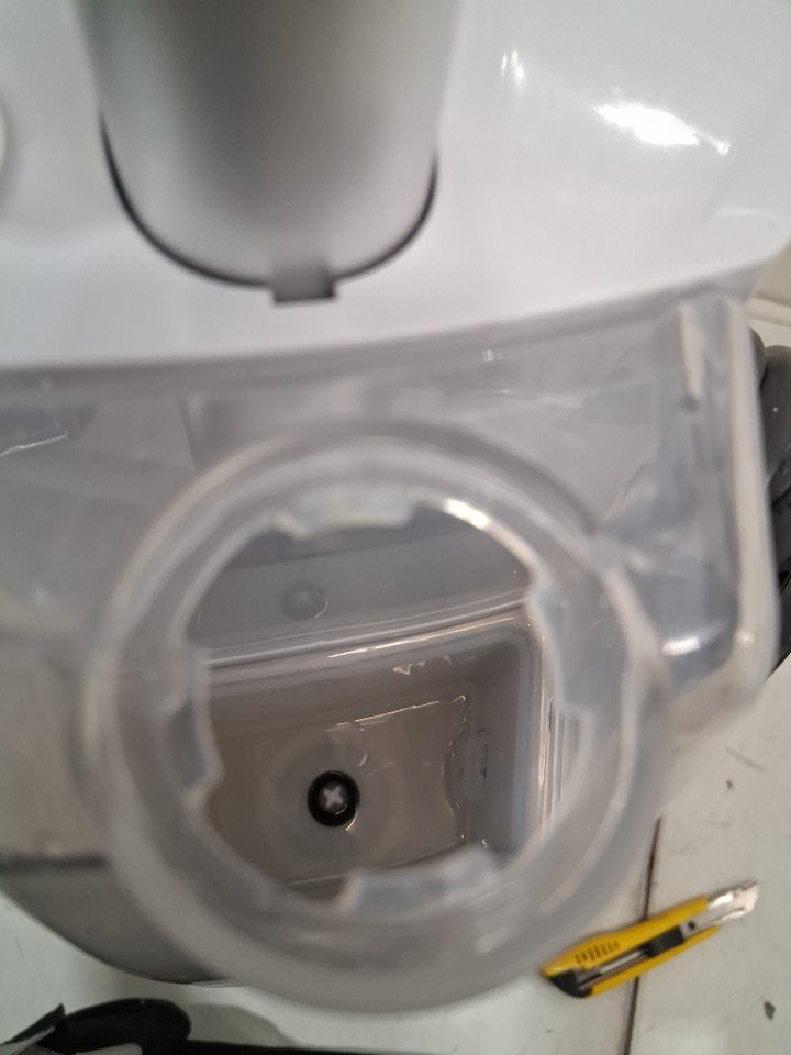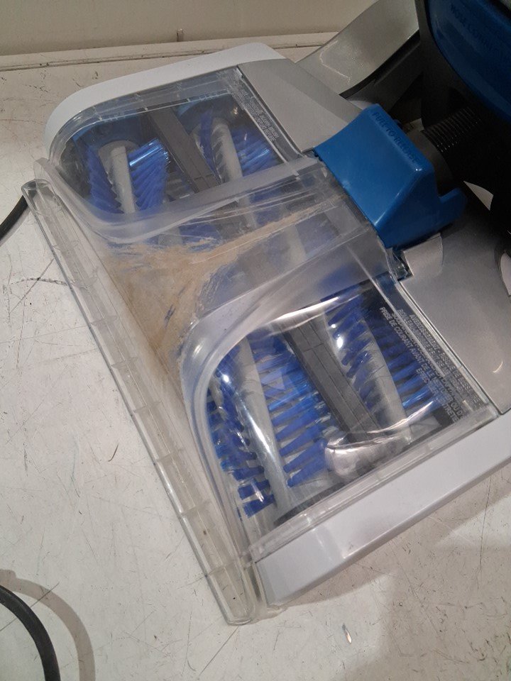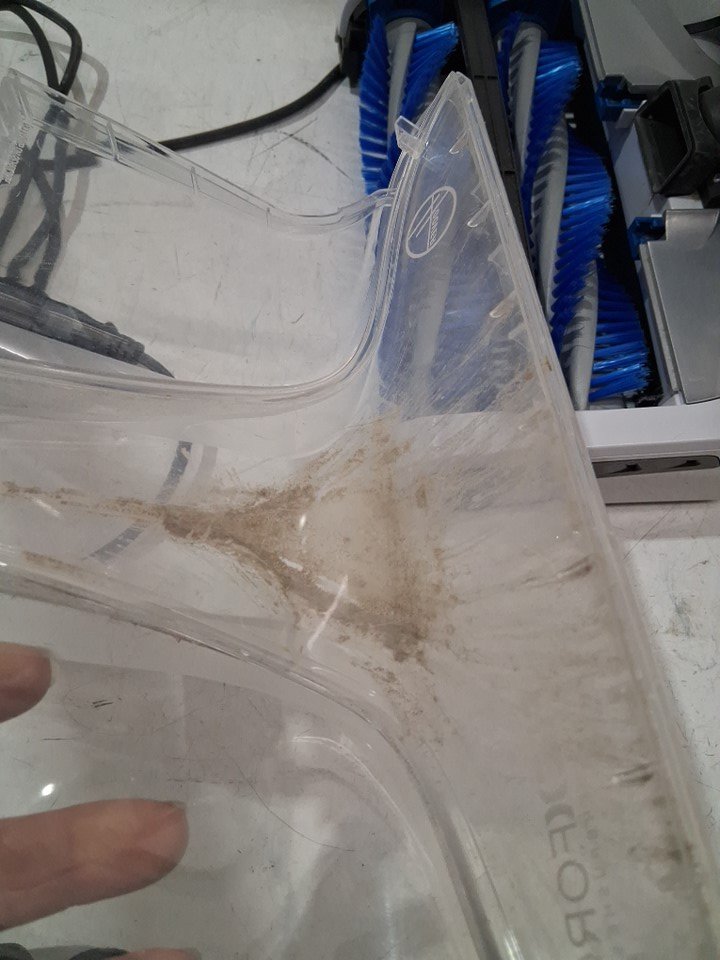 tab for top reservoir has broken off, does still click in but unsure on the seal item has some dirt remaining on vacuum head as well as in the catch compartment as well as the tires have some light scuffs from previous use please note attachments and solution are missing