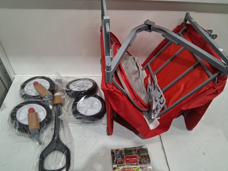 RADIO FLYER BASE MODEL 3-IN-1 EZ FOLD WAGON FOR KIDS, GARDEN AND CARGO, MAX 150 LBS CAPACITY, RED/GREY (MODEL: 3953)