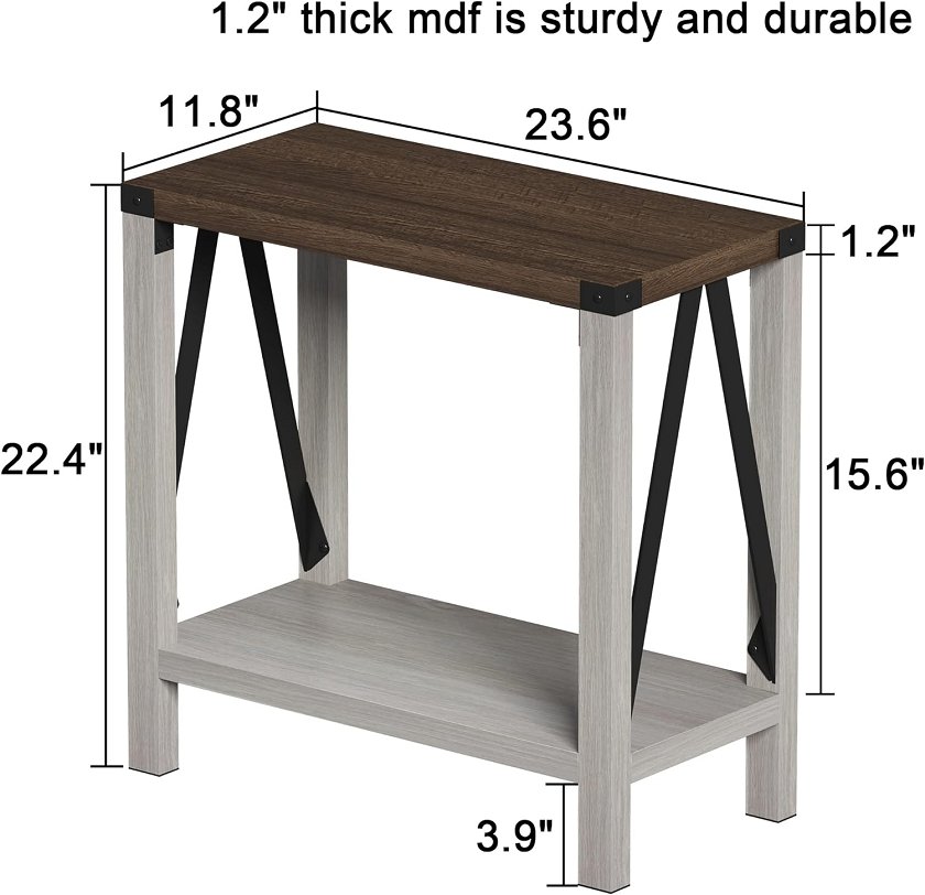 Choochoo farmhouse end table set with storage shelf - 11.8" x 23.6" x 22.4" - rustic brown (model: ET2203-RB-S)