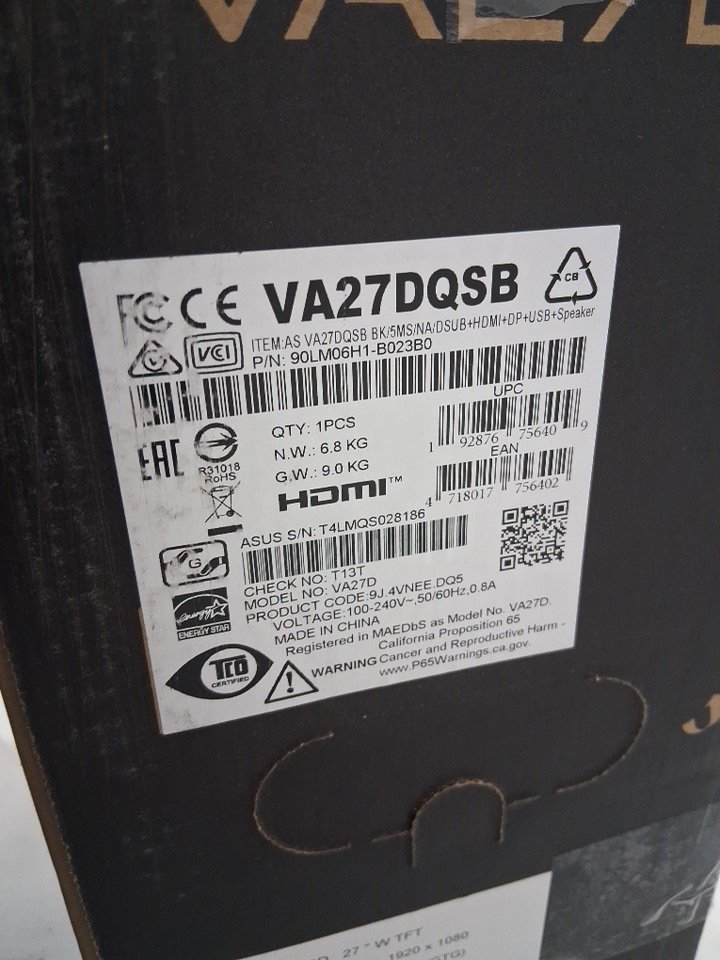 ASUS 27" Eye Care 75Hz IPS Monitor (Model: VA27DQSBY)