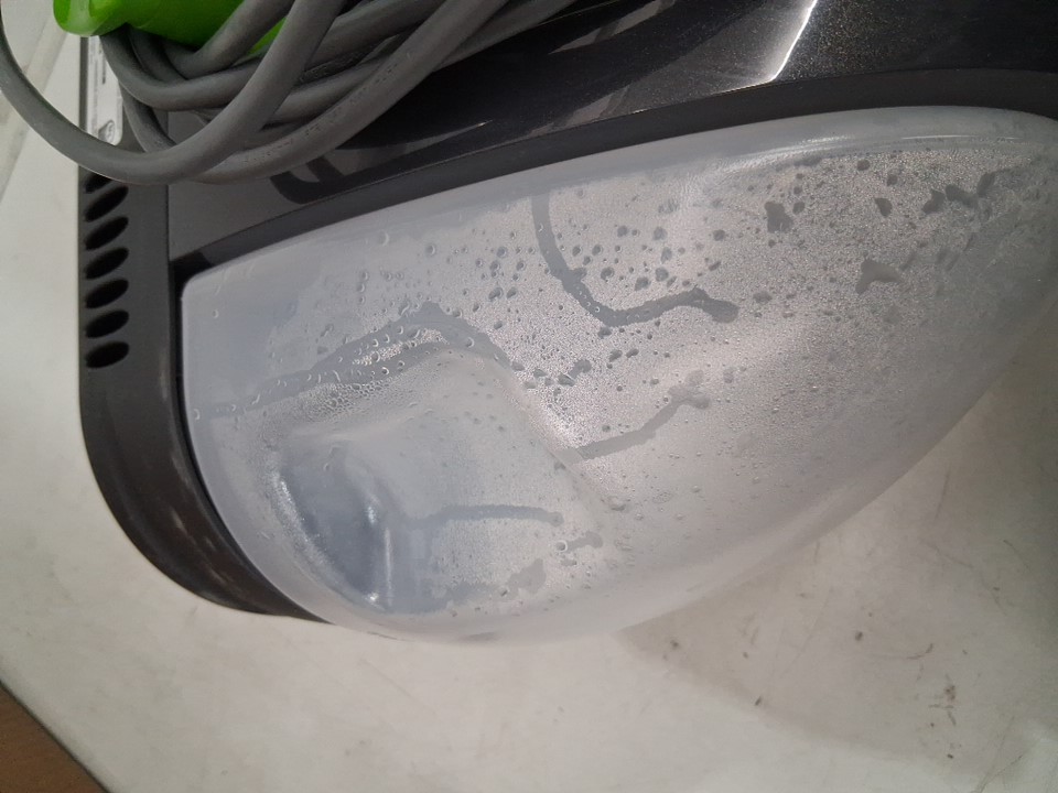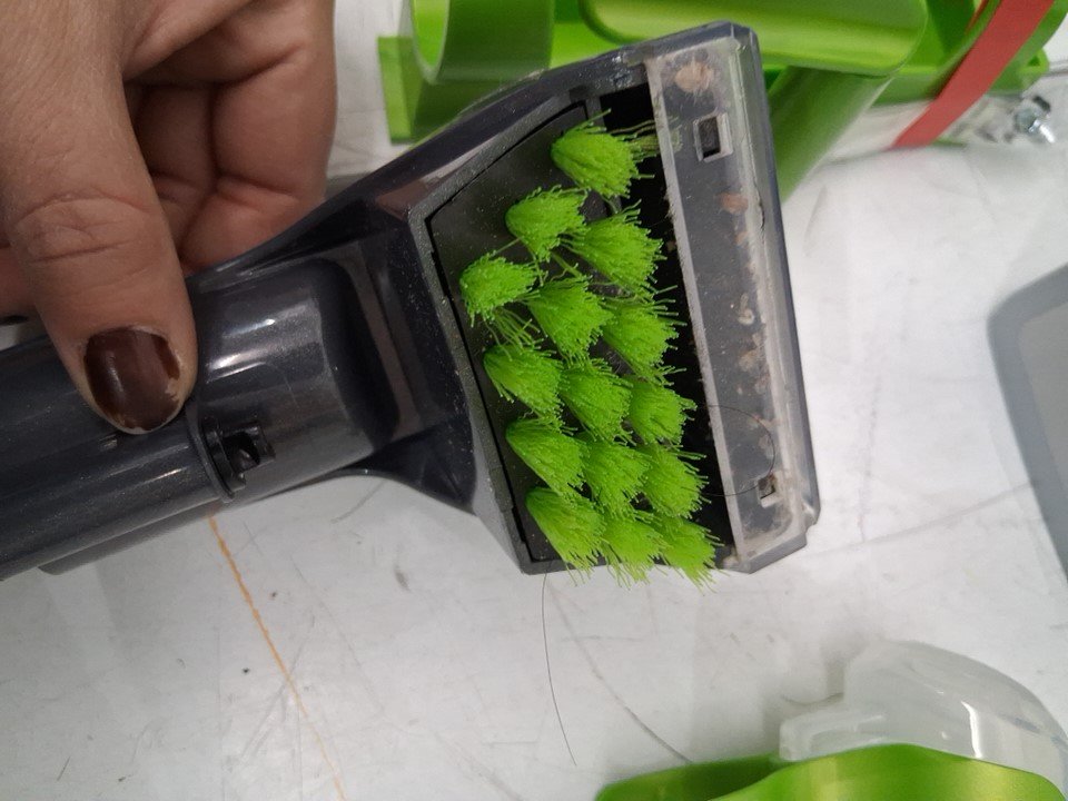 the liquid has less than half the bottle and there is water debris inside and minor fuzz on main brush from previous use tested for power