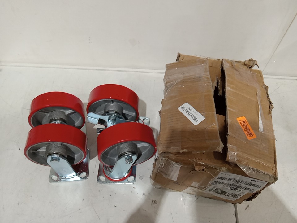 4PK 2 Rigid and 2 Swivel Casters WHEELS with Side Brake - 1000LBS CAPACITY PER WHEEL - 6" x 2" - red (model: g3355-JL6IN2WXPSJ2DXTXHV0-7)