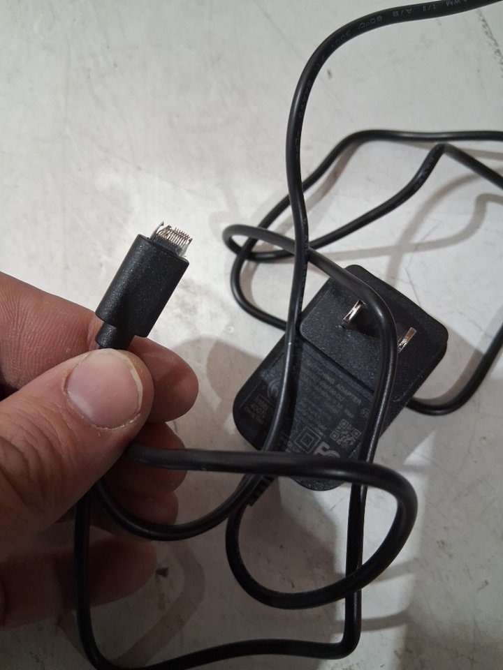 There appear to be no headphones included in the box, and the USB-C power cable included is damaged beyond usability - see photos. Outside of this, all parts appear present and functional without any significant damage or signs of use. Tested for basic power.