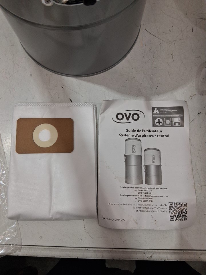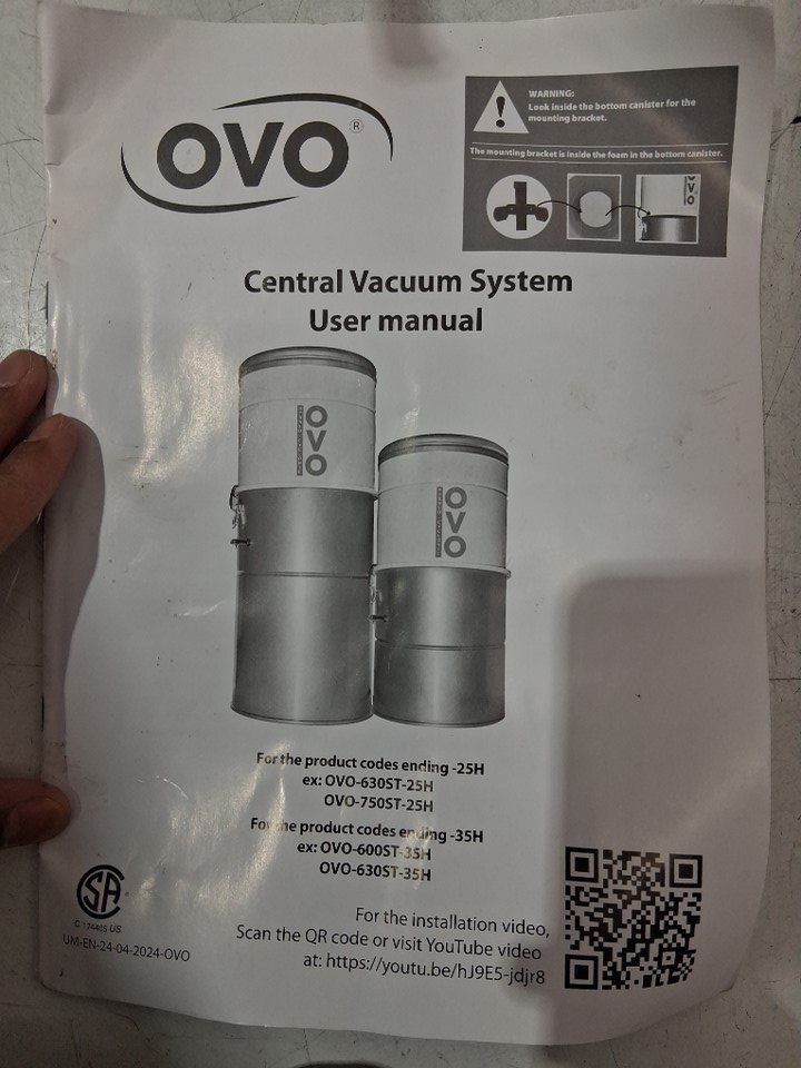 OVO Large and Powerful Central Vacuum System - 25L - 7500sqft - GREY (MODEL: OVO-63OST-25H)