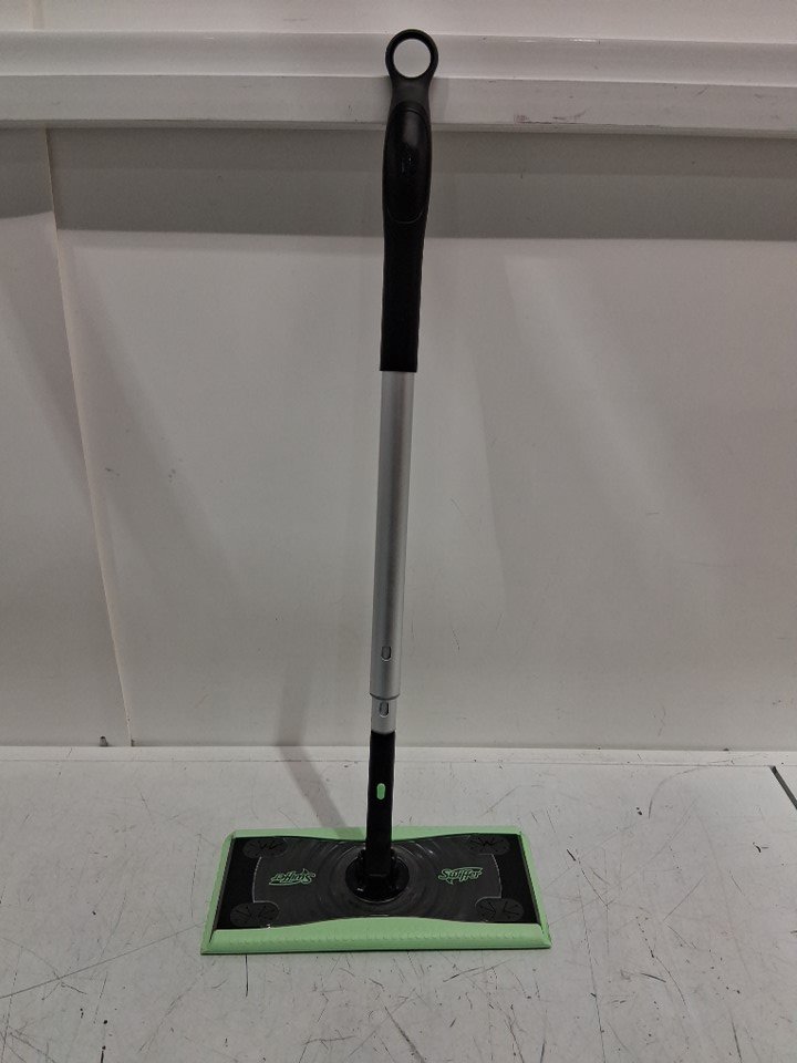 This product does show signs of previous use, there is light markings on the bottom, The wipes to attach to the swiffer are missing as well.