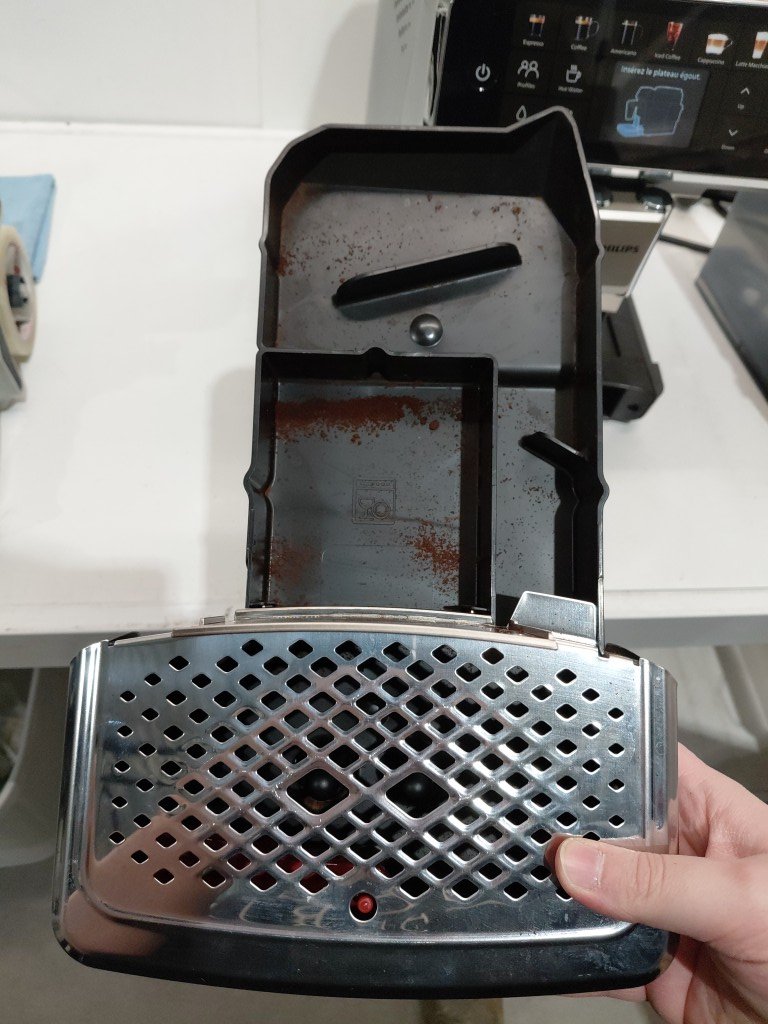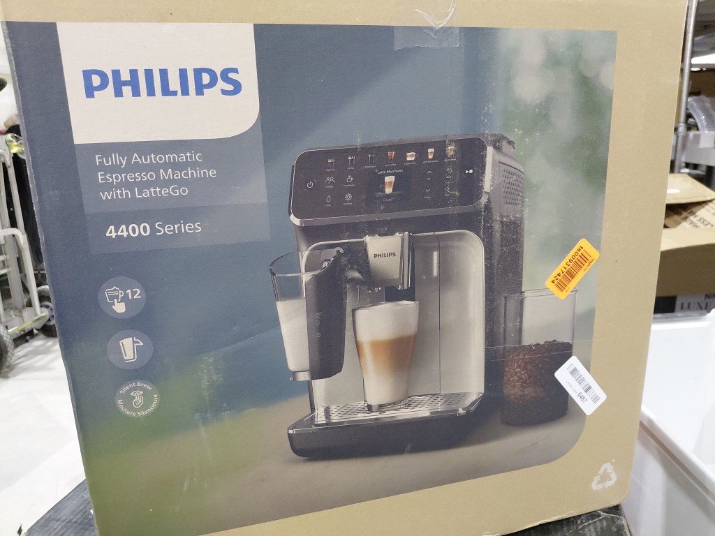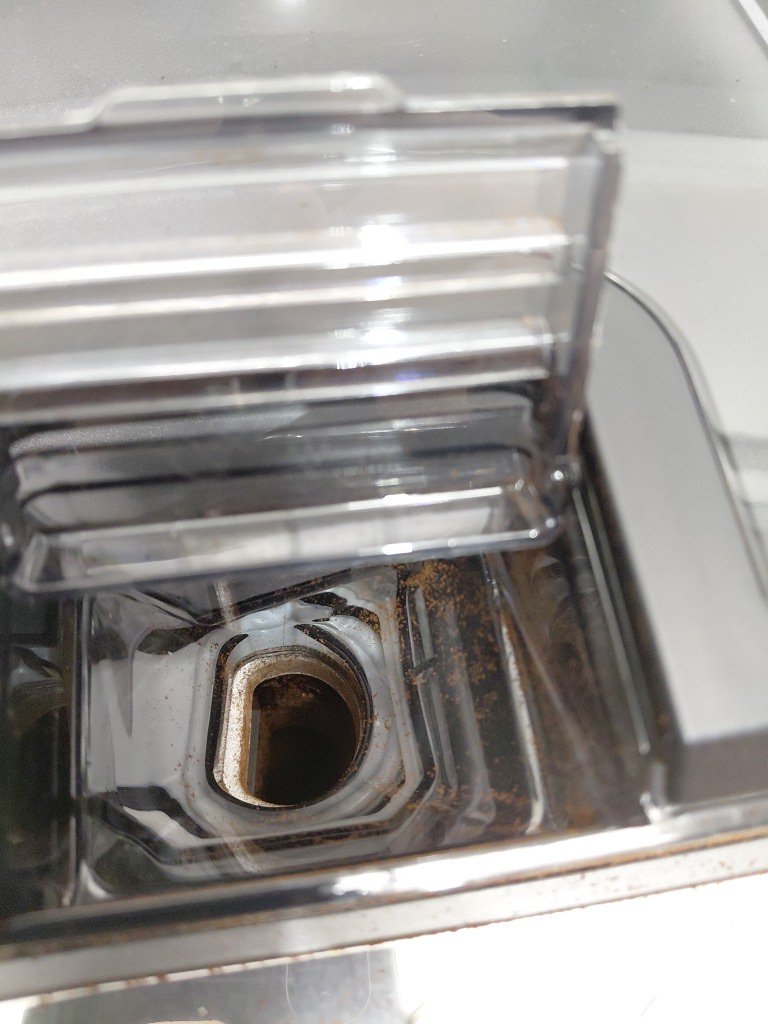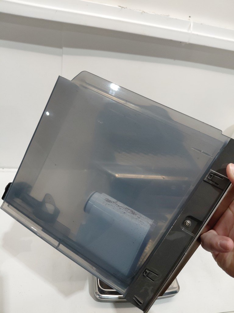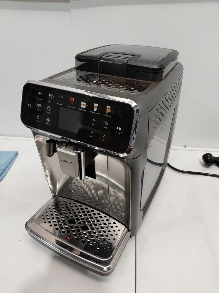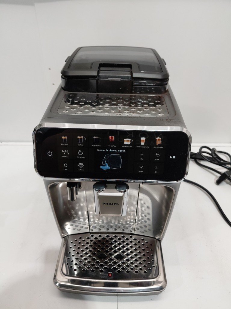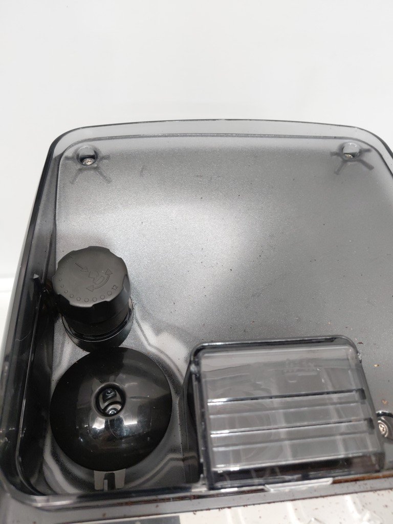 shows signs of previous use (coffee bean residue throughout) missing lattego cup lid part of aroma seal is loose tested for power.