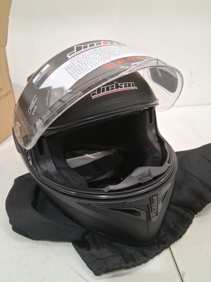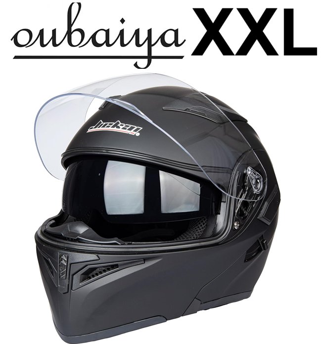 Oubaiya Full Face Dual Visor Sun Shield Flip up Modular Motocross Motorcycle Helmet - XXL - Matte Black - (Model: JK902)