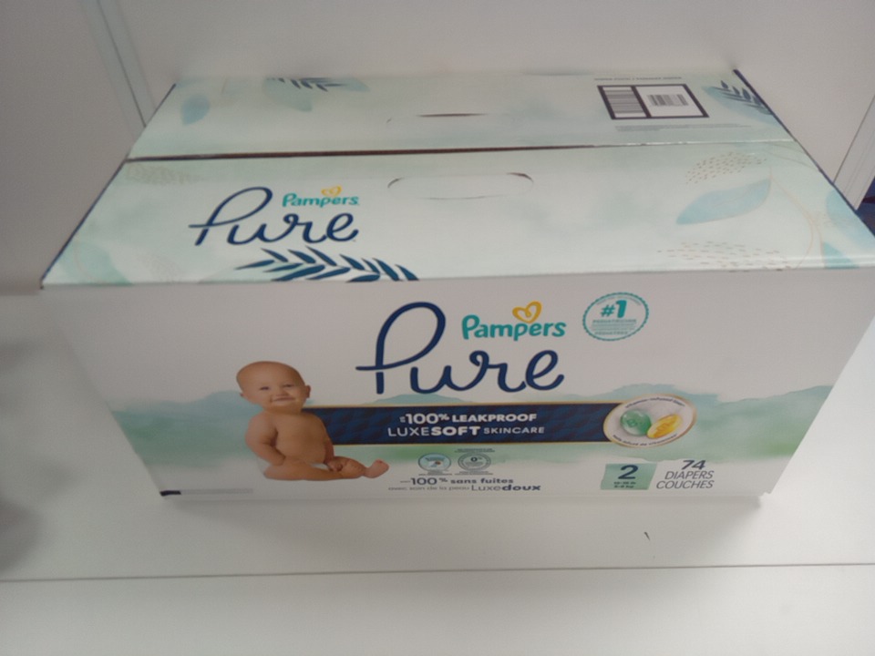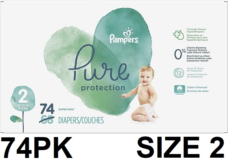 74PK PAMPERS PURE PROTECTION hypoallergenic DIAPERS - size 2 (12LB-18LB)