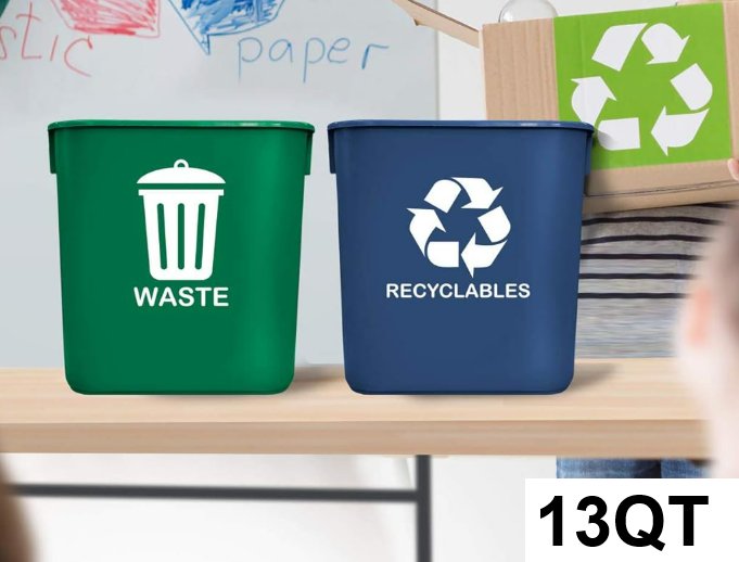 2pk Acrimet Waste basket Bins for Recycling and Waste - 13qt each - green blue