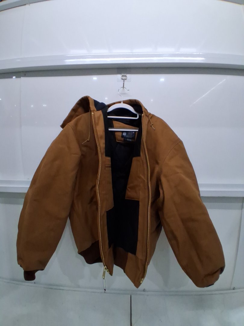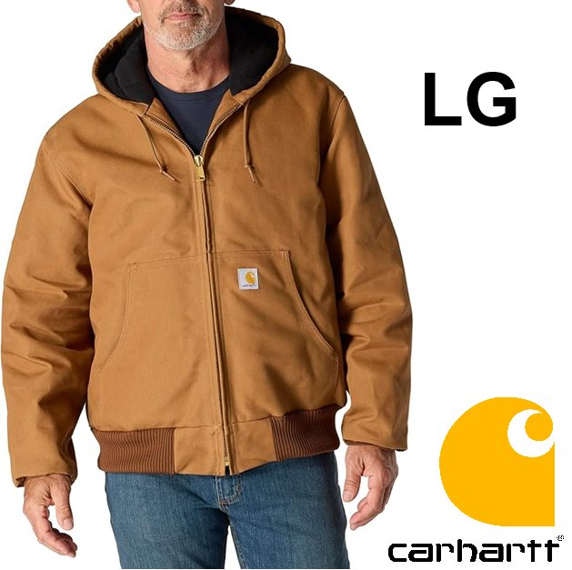 MEN'S CARHARTT QUILTED FLANNEL LINED DUCK ACTIVE loose fit hooded JACKET - Large - BROWN (MODEL: 0J0140-M)
