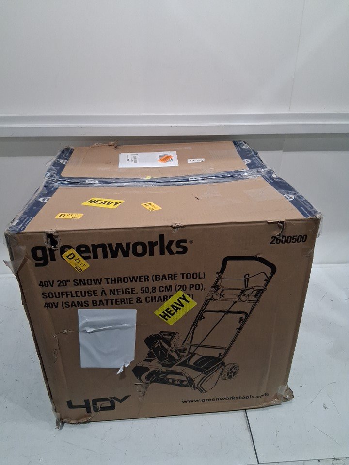 Greenworks 20" Brushless Snow Thrower - *Battery And Charger Not Included* - 40V - GREEN (MODEL: 2600500)