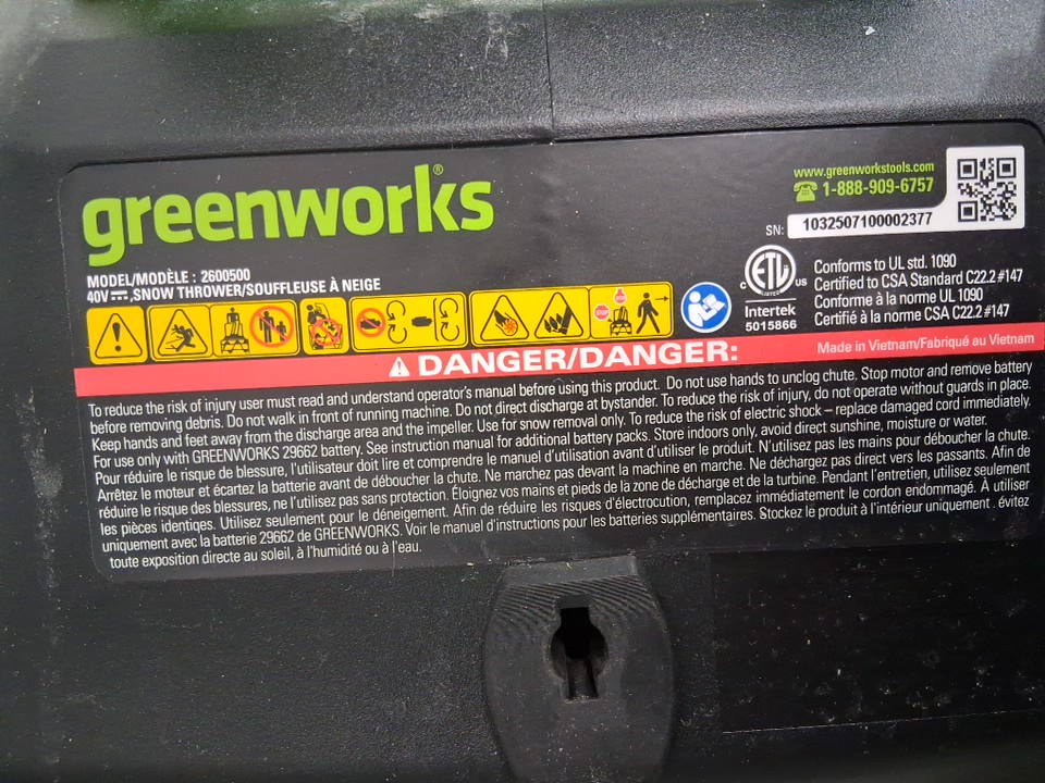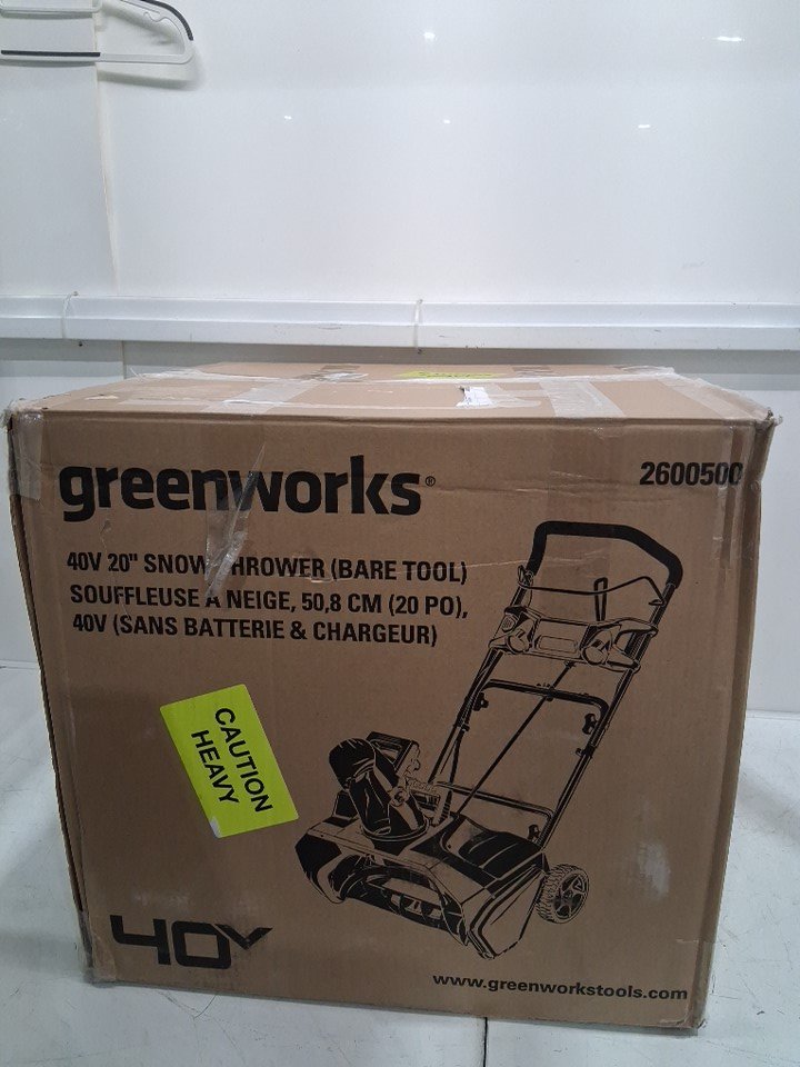 Greenworks 20" Brushless Snow Thrower - *Battery And Charger Not Included* - 40V - GREEN (MODEL: 2600500)