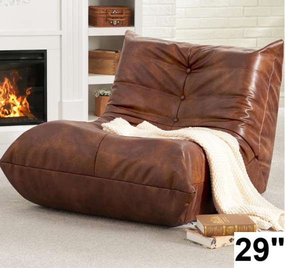Faux Leather Bean Bag Chair for Living Room - 29" - BROWN