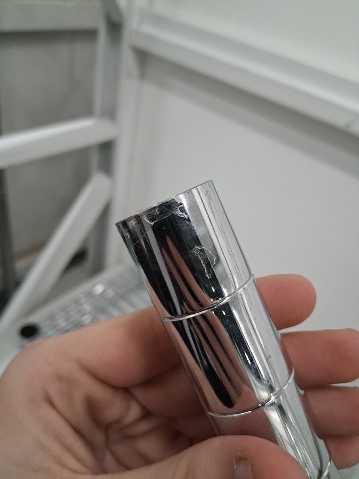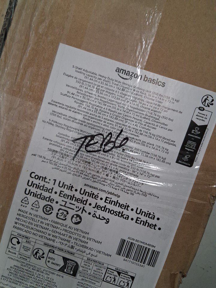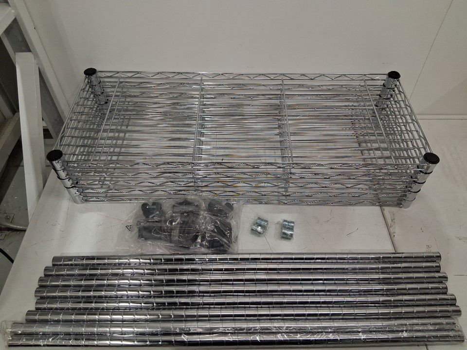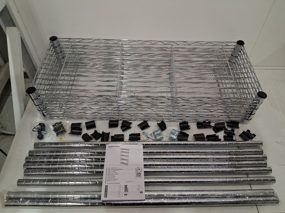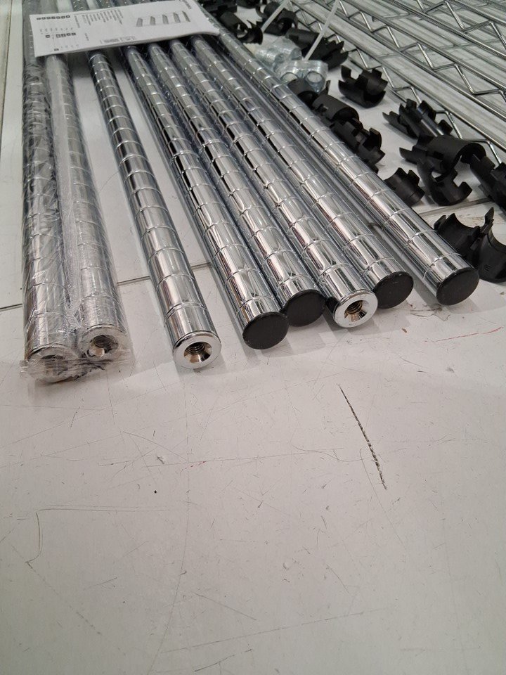 There is a pole that has some tape residue on it due to how the rack was shipped, everything else looks good/new.