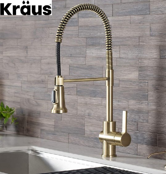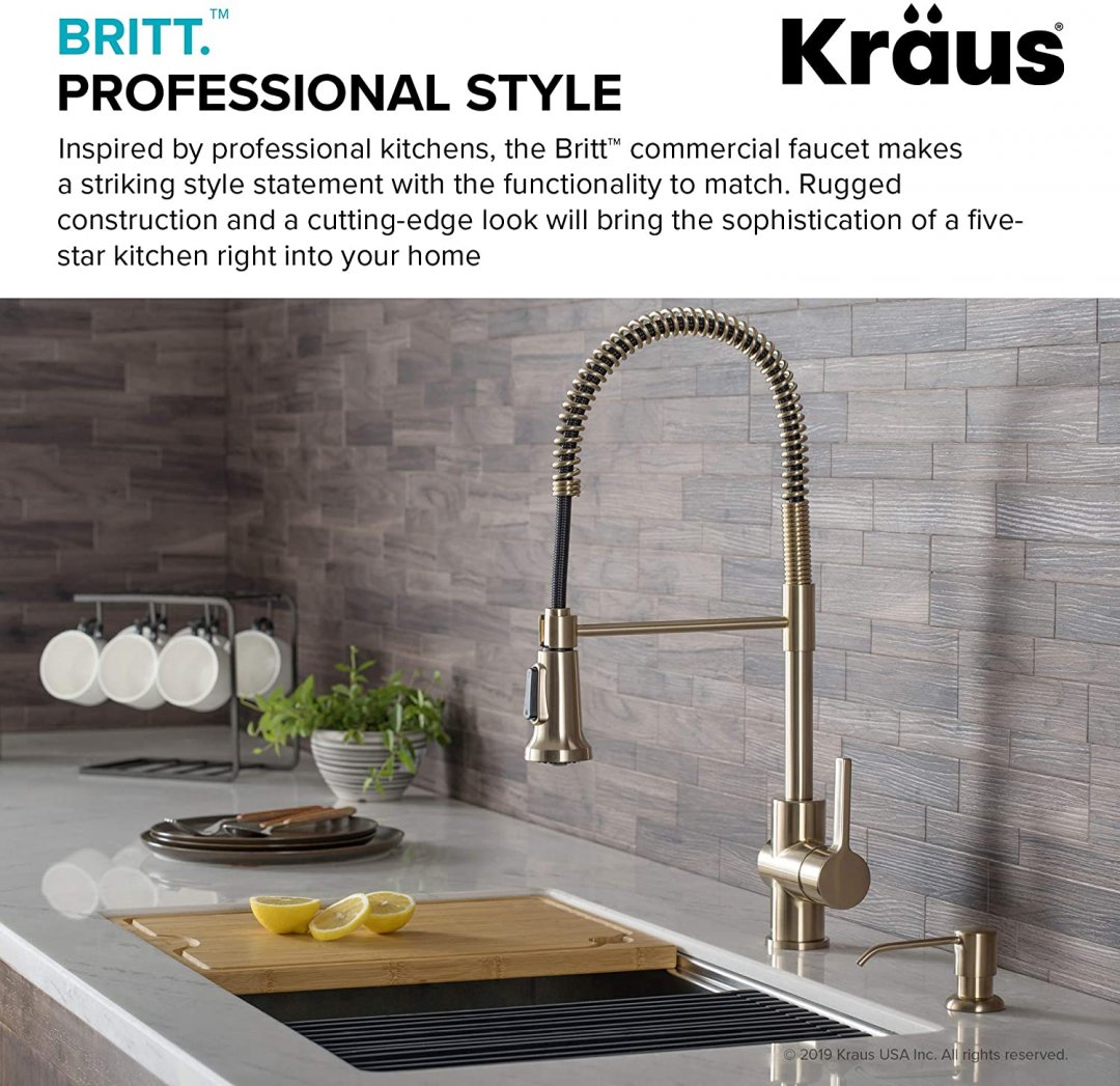Kraus Britt Pre-Rinse/Commercial Kitchen Faucet with Dual Function Sprayhead - Brushed Gold - (MODEL:KPF-1690BG)