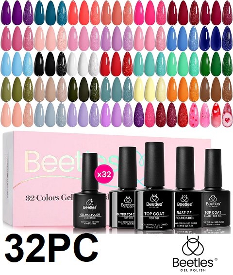 32PC beetles Gel NAIL Polish Set - ASSORTED COLORS WITH TOP/BASE COAT