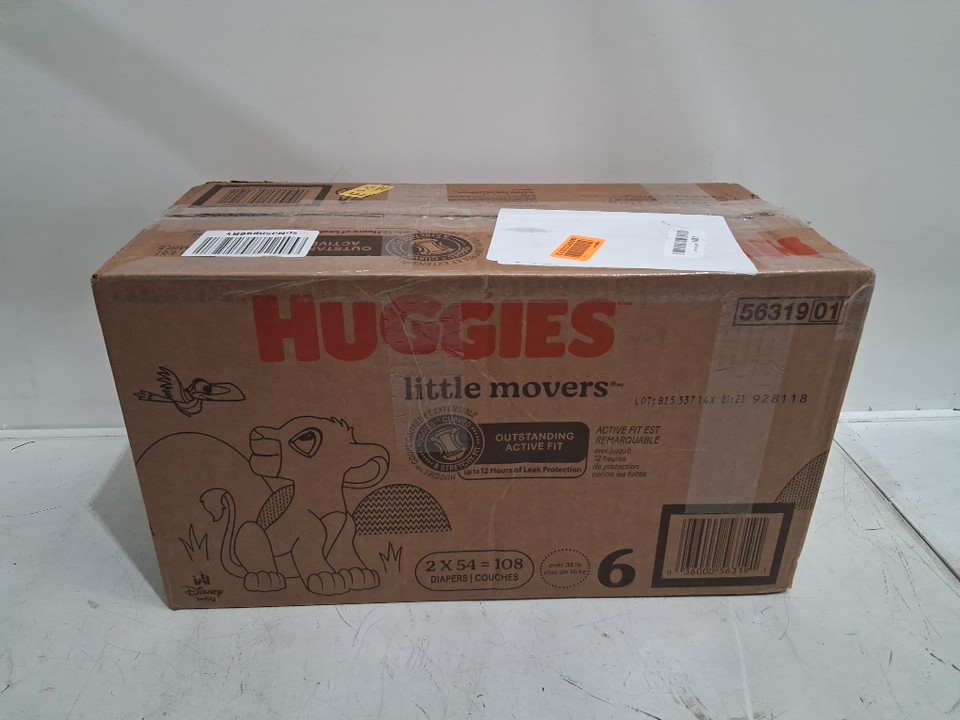 108pk huggies little movers outstanding active fit disposable baby diapers - size 6 - disney baby lion king