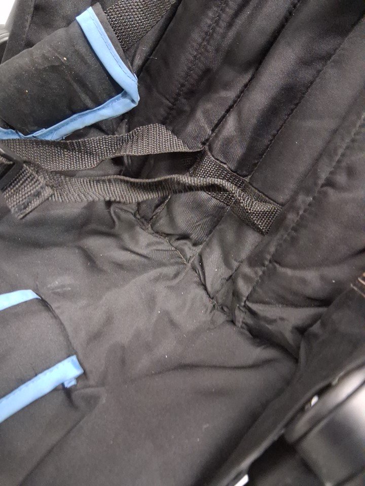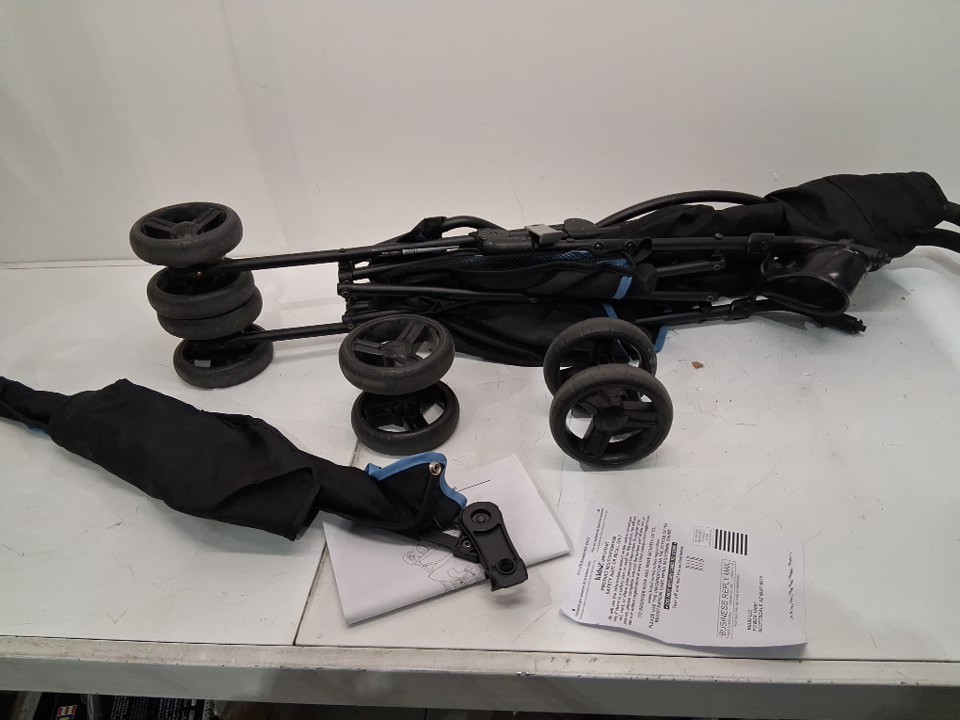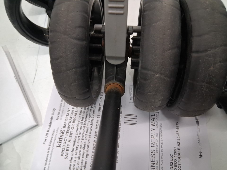 wheels have wear, there is some light rust on the connections/folding points Light dust/dirt on seat