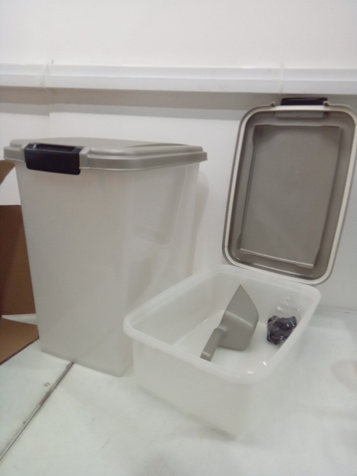 3PC IRIS AIRTIGHT PET FOOD STORAGE CONTAINER WITH SCOOP - 33QT & 12QT - CHROME (MODEL: MP-8)