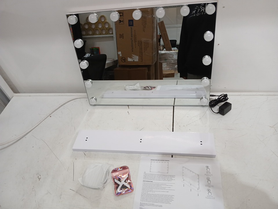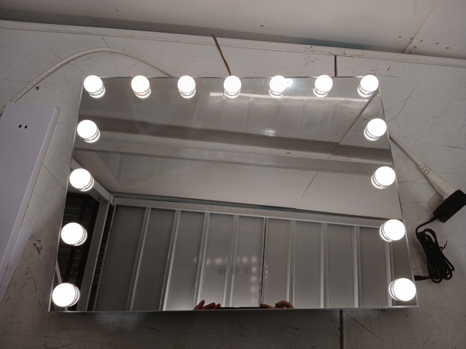Hansong Hollywood Touchscreen LED Makeup Mirror with 15 Dimmable LED Bulbs and USB Charging Port - 22.83" L x 18.11" W - White (Model: DC117-15JM)