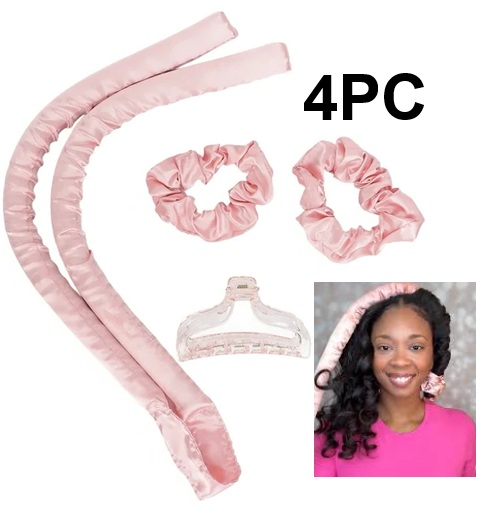 4PC Heatless Hair Curlers for Overnight Curls - Satin - Pinck