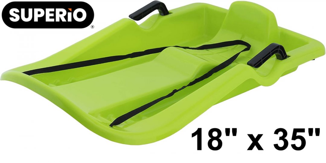 Superio Downhill Snow Sled With Brake Handles - 18" x 35" - Green (Model: 397)