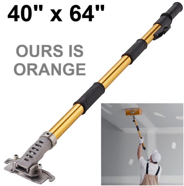 Drywall Flat Box & Flat Finishing Extension Handle - 40" to 64" - Orange/Black (Model: PB-10H)