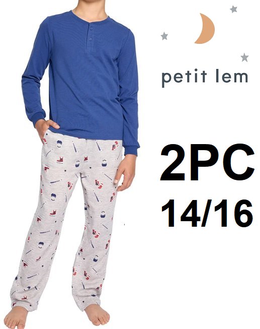 2pc boy's PL by Petit Lem Pajama Set - size 14/16 - blue grey hockey