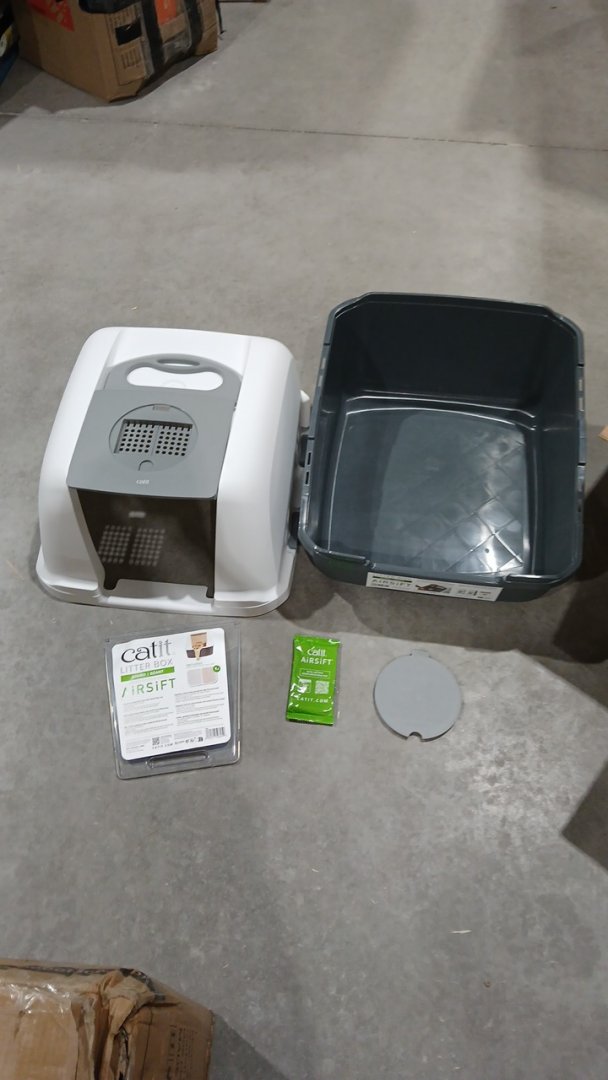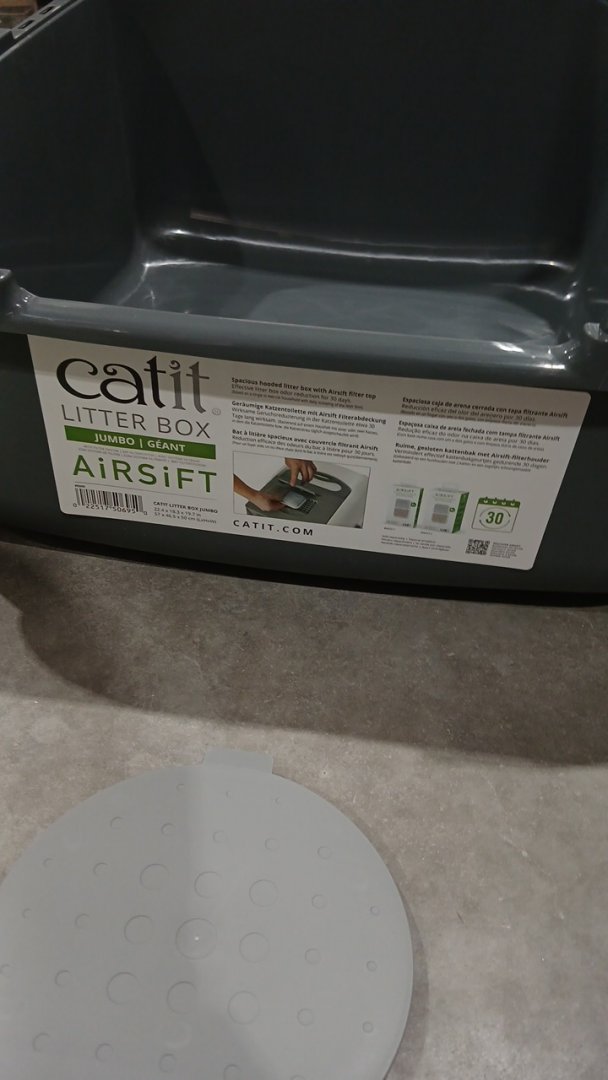 CATIT CLEAN JUMBO HOODED LITTER BOX WITH AIRSIFT AIR FILTER - 22.4" x 18.3" x 19.7" - GREY/white (model: 50695)