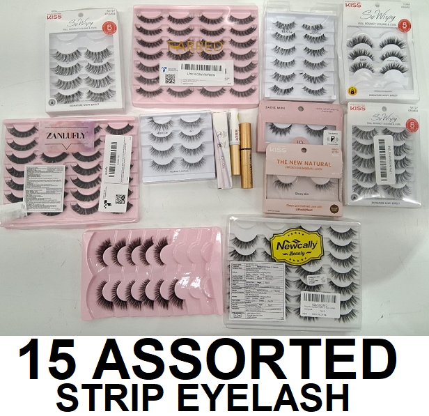 15 ASSORTED STRIP EYELASHES SETS - ASSORTED BRANDS/TYPES/CURL