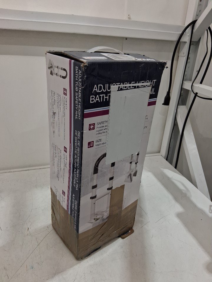 DRIVE MEDICAL ADJUSTABLE HEIGHT & WIDTH BATHTUB SAFETY RAIL - 14.5" - 17" x 3" - 7" - 300lbs Max - WHITE (MODEL: RTL12036-ADJ)