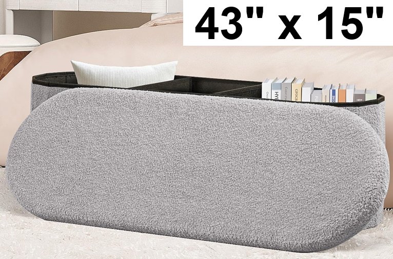 PINPLUS Tufted Oval Ottoman Bench Foot Rest with Storage - 43" x 15" x 15" - grey
