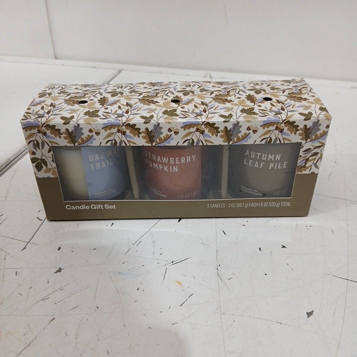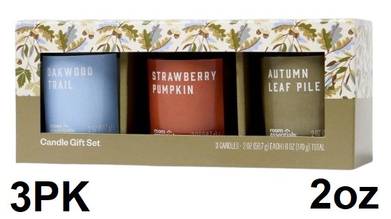 3pc room essentials cozy shop candle gift set - 2oz - autumn leaf pile/ strawberry pumpkin/oakwood trail