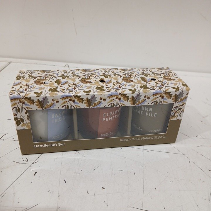 3pc room essentials cozy shop candle gift set - 2oz - autumn leaf pile/ strawberry pumpkin/oakwood trail