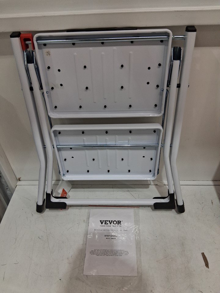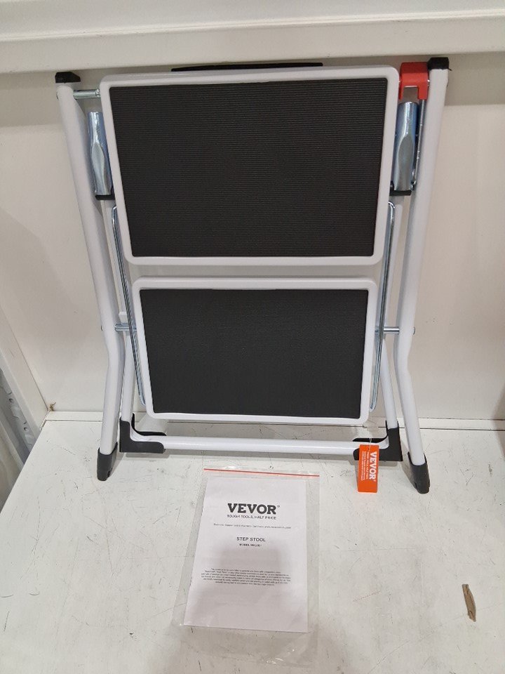 Ergonomic Folding Steel Step Stool with Wide Anti-Slip Pedal - 2-Step 330lbs Capacity - black/white (model: wk2031)