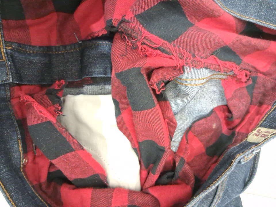 - interior lining ripped, can be re-sewn and not seen from the outside, the bottom of the leg has some dirt on it (see photos)