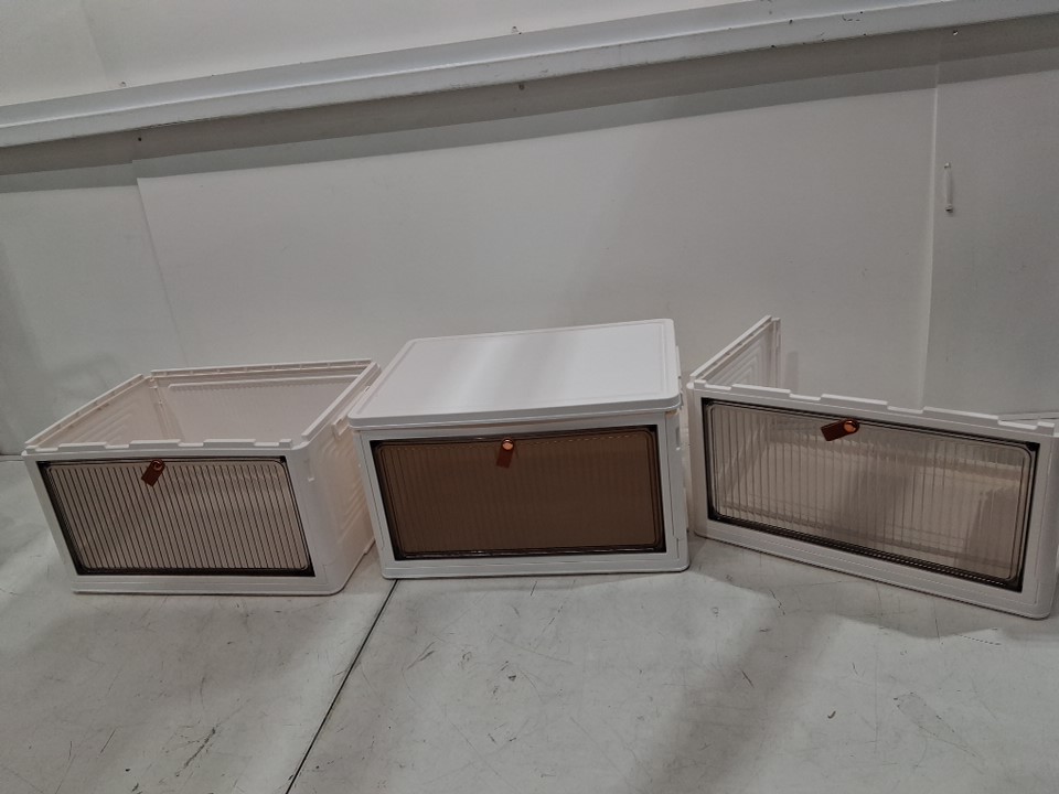 missing wheels for the bottom of the bins and one of the bins is bent, see photos.