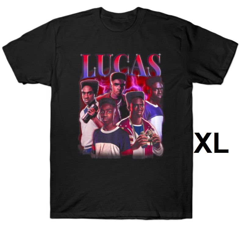 adult unisex Stranger Things 5 Lucas Heartthrob graphic T-Shirt - extra large - black