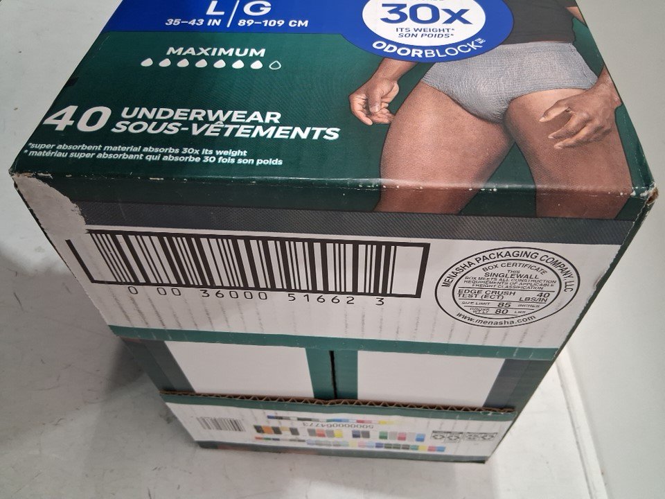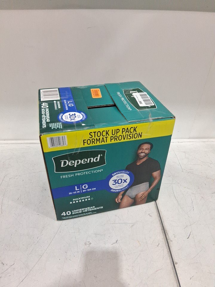 40PK MEN'S DEPEND FRESH PROTECTION INCONTINENCE UNDERWEAR - LARGE - GREY - (model: 51662)