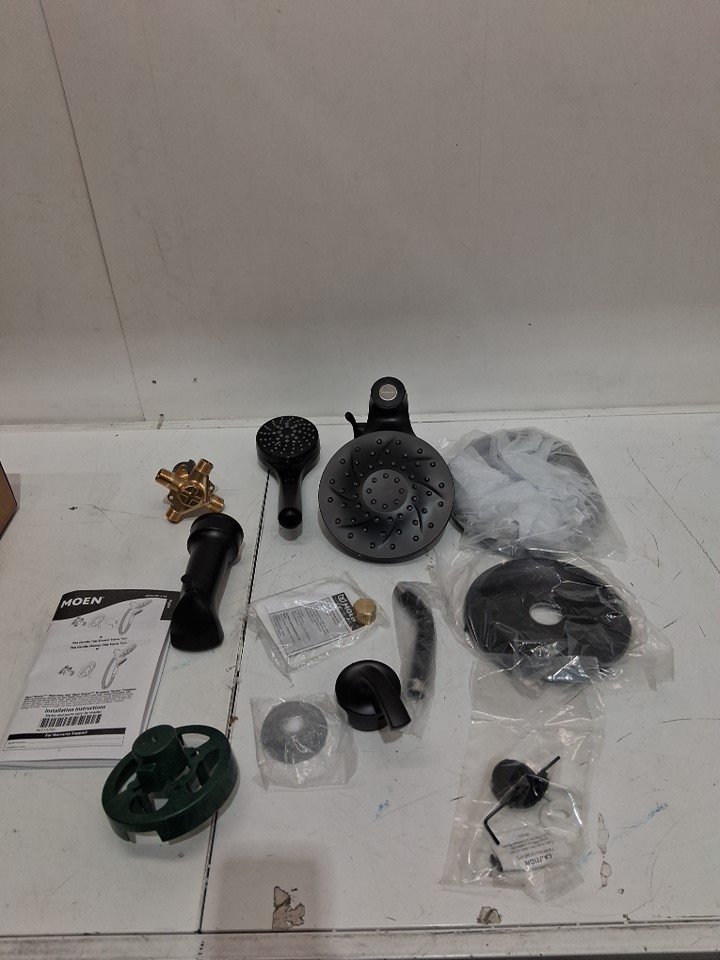 moen Engage Magnetix Matte Black Multi-Function Handshower and Rainfall Shower Head Trim Combo with Shower Handle, Tub Spout, Metal Hose and Valve - matter black (model: 82304BL)