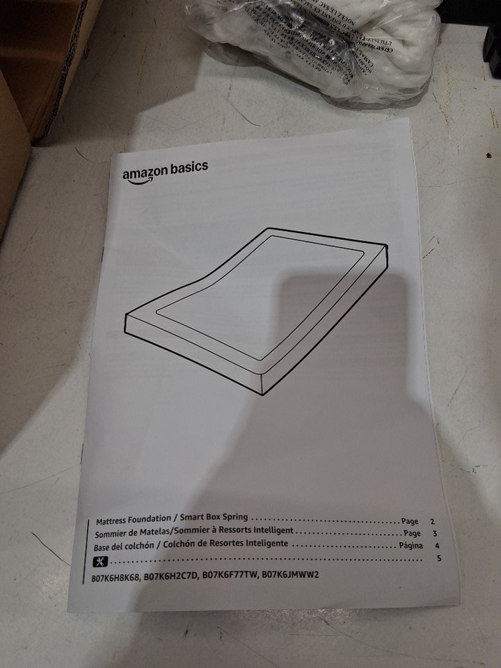 Amazon Basics Smart Box Spring Bed Base - twin - 9" x 74" x 38" - white - (model: B07K6F77TW)