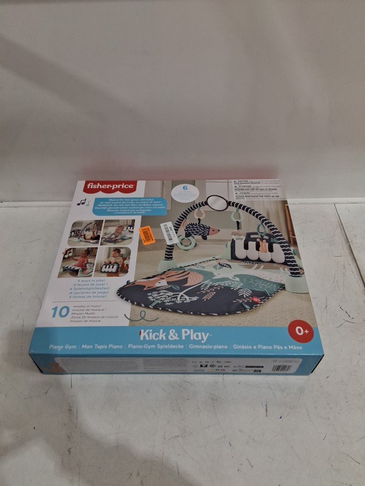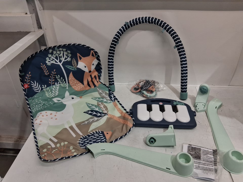 FISHER-PRICE kick and play piano gym playmat with musical and sensory toys for healthy development - 4-9 months - navy fawn (model: hkx37)