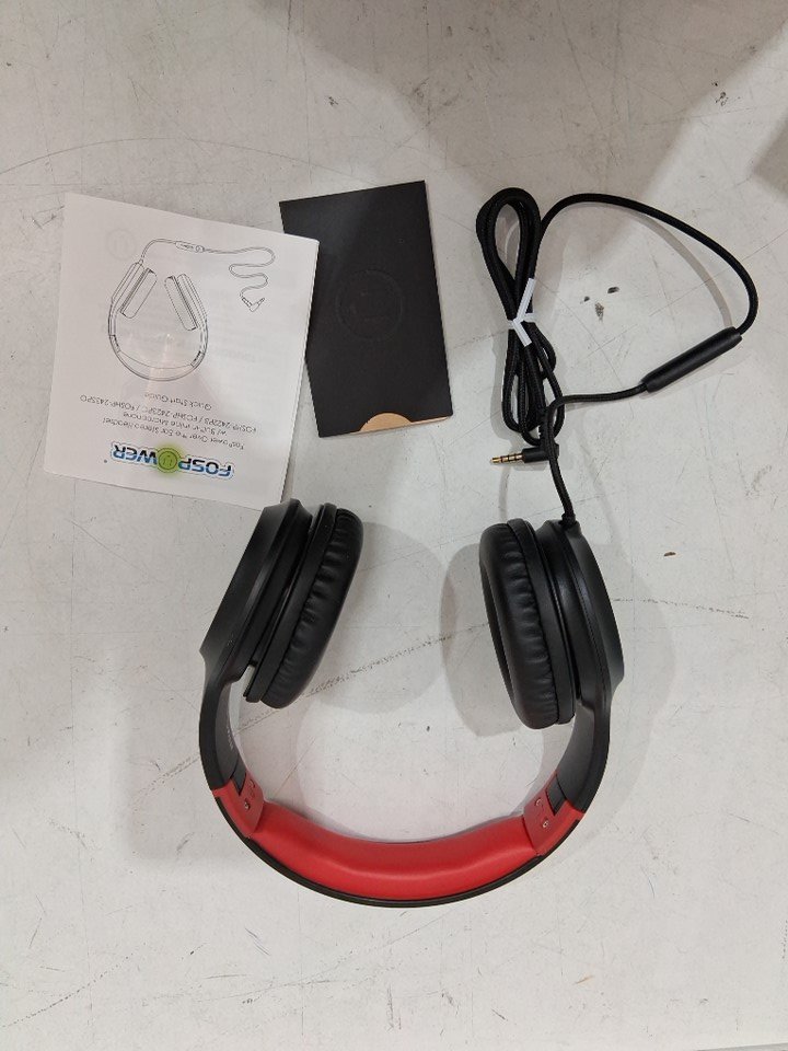 Kids FosPower Foldable Lightweight Over Ear Headphones with Microphone - 85dB Safe Volume Limited - red / black